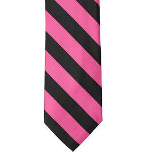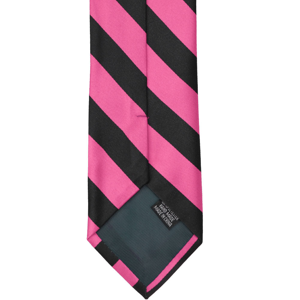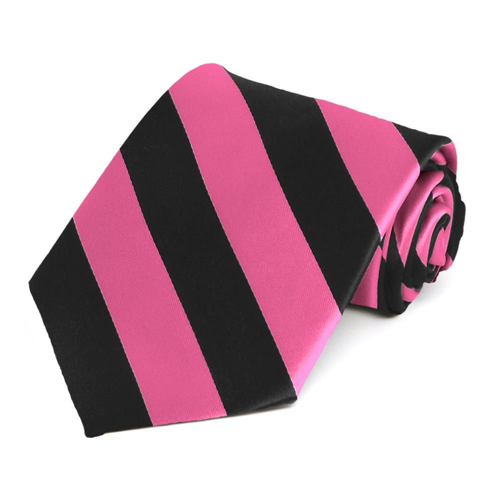 One of our most popular wedding ties, now in an extra long length for big and/or tall men. This hot pink and black striped tie features a 63-inch length, 6-inches longer than our standard-sized ties. Made from 100% polyester microfiber. More sizes and styles available.