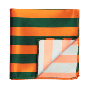 Flaunt your school or team pride with this hunter green and orange striped pocket square tucked into your pocket. Sporting collegiate stripes at a classic 0.75-inches wide, it looks great paired with the matching necktie (sold separately) or all on its own. You'll find so many occasions to wear this accessory, whether you're hollering from the bleachers or strutting across the graduation stage.