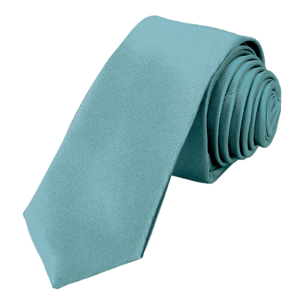 This isle blue skinny tie is such a gorgeous color, and it's just what your wardrobe is missing. Trendy, 2-inch width. The material is heavyweight woven polyester with a light satin finish, so it's not too shiny, not too dull.