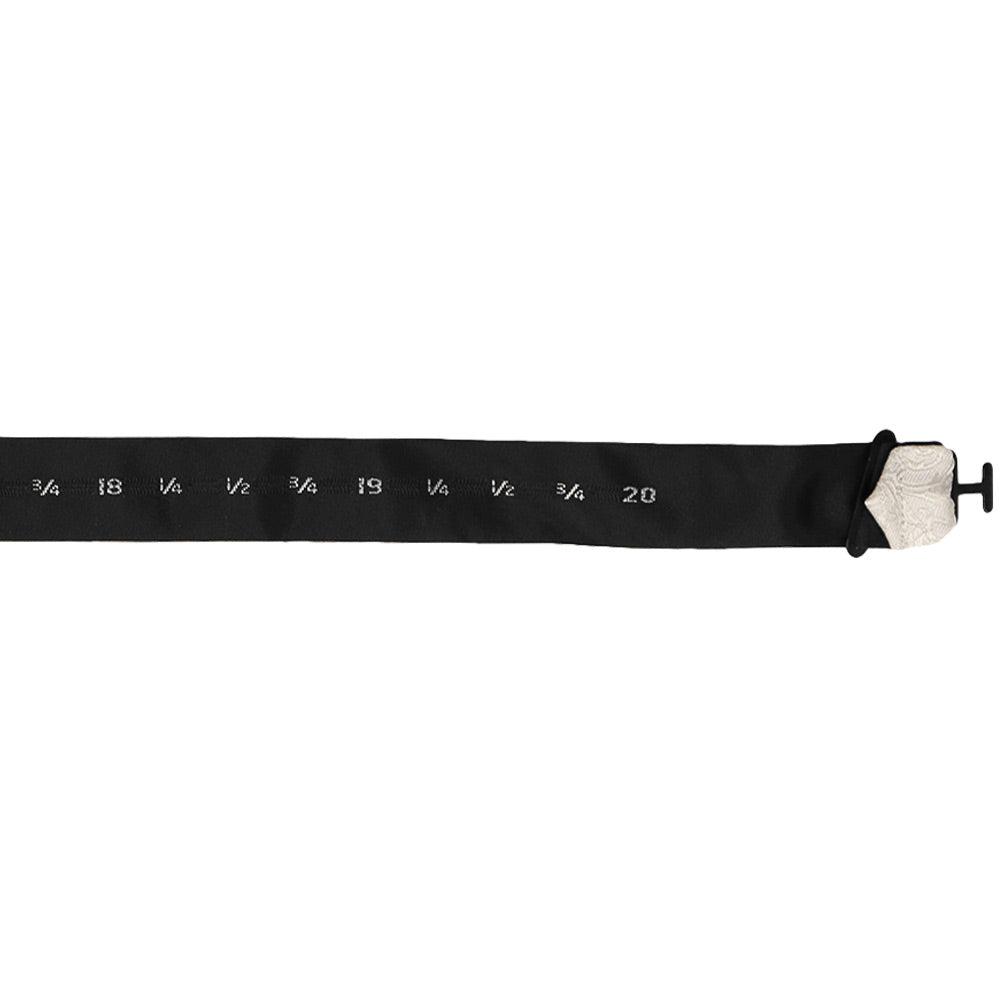 This pre-tied bow tie is secured in two steps: First, fitting it to the wearer's neck size and then fastening it around the neck. To wear it:
