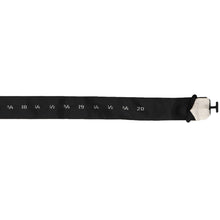 - Find the metal hook at the end of the collar (shaped like a capital "T") and insert it into the numbered notch that corresponds to the neck size. Ensure the sliding metal hook is placed in the loop created.