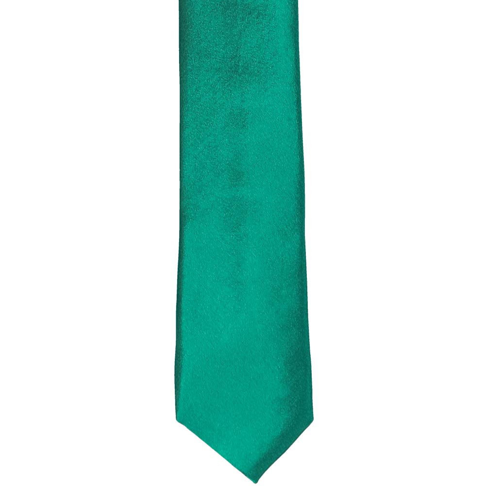 Get ready to steal the spotlight with this eye-catching jade skinny tie! From its trendy width to its captivating jewel tone, this tie is destined to make a statement at your next dressed-up occasion. Whether it's a wedding, prom or just livening up a work day, jade pairs perfectly with navy blue and charcoal suits. And don't forget the finishing touch; matching pocket squares are ready to elevate your look (sold separately)!