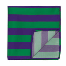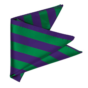 Gear up for the school year, game day or Mardi Gras with this spirited kelly green and dark purple striped pocket square! The classic collegiate stripes are just the right width—not too wide, not too skinny, measuring at 0.75 inches. And for those special occasions like graduation or alumni events, don't forget to pair it with the matching necktie (sold separately).