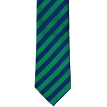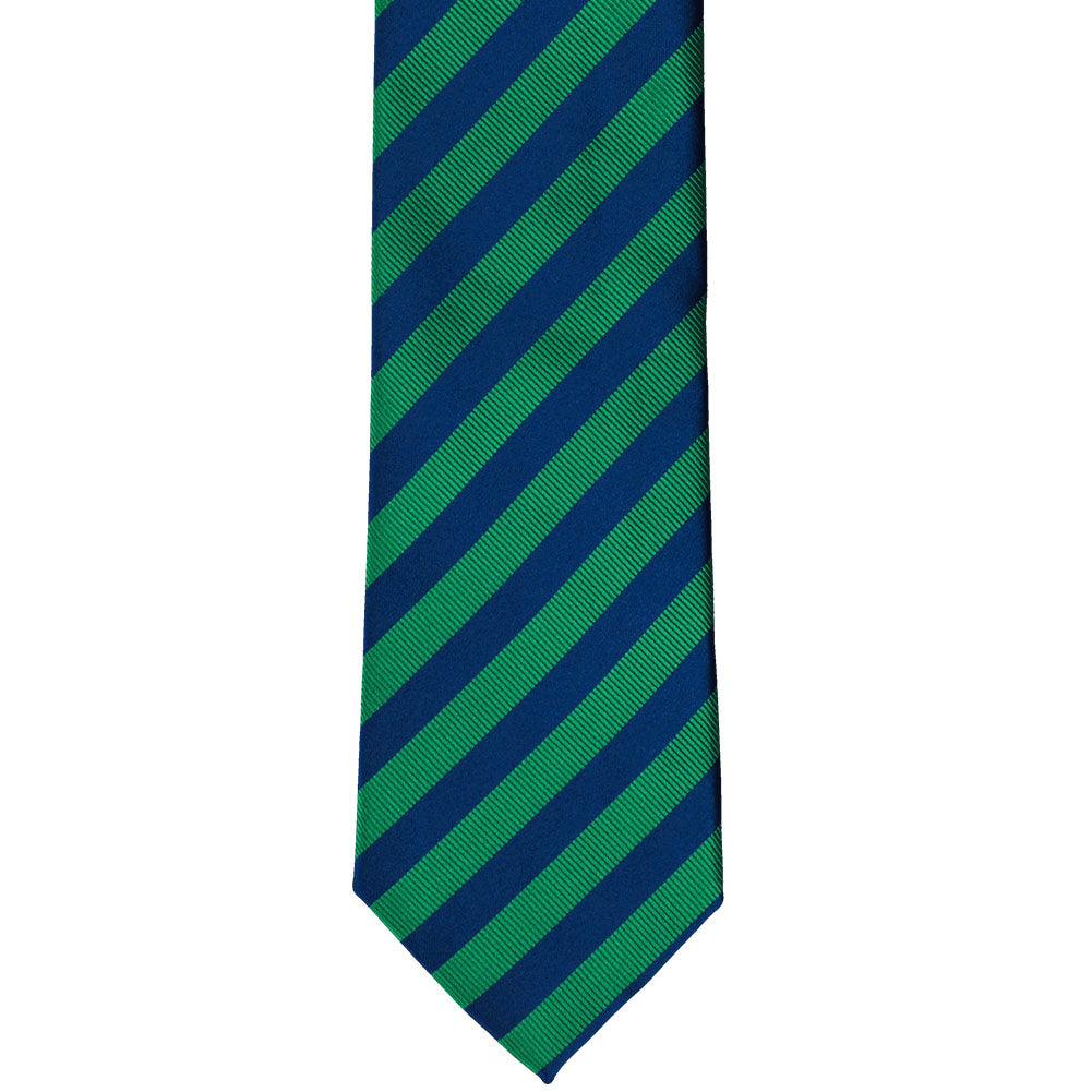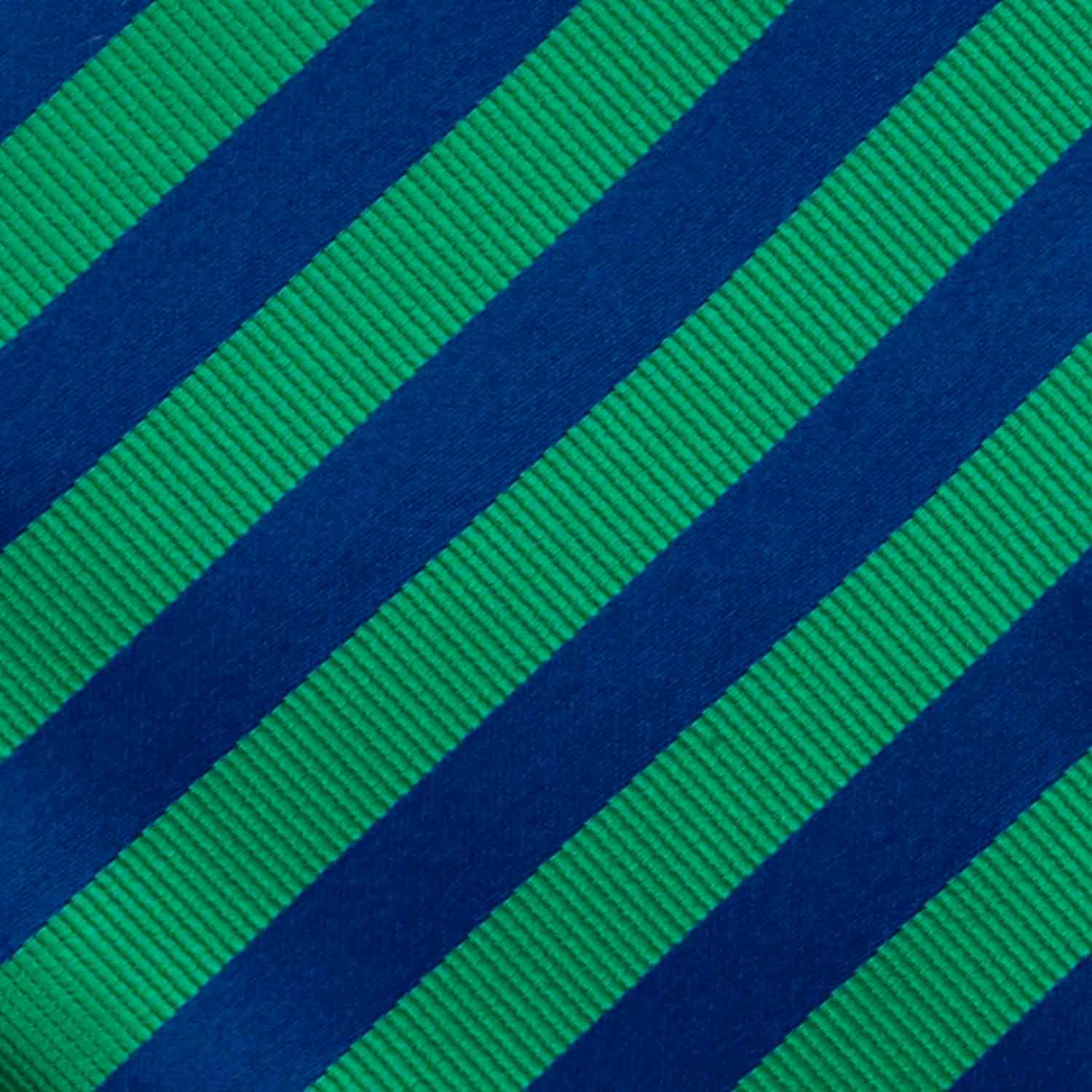This kelly green and royal blue striped tie is the perfect color combo for matching school or sports team colors. But it's a great go-to as well. You can easily dress it up for a more formal occasion or simply stand out in your everyday attire. Purchase the matching pocket square for when you're wearing it with a suit.