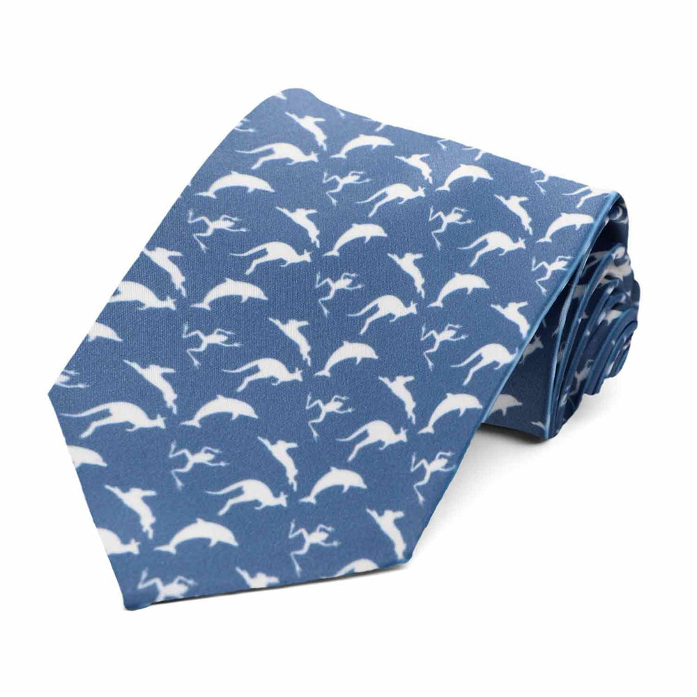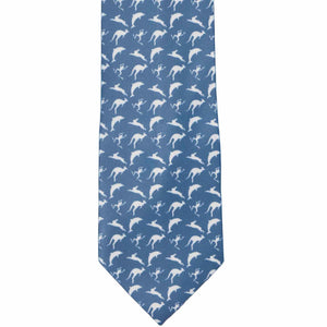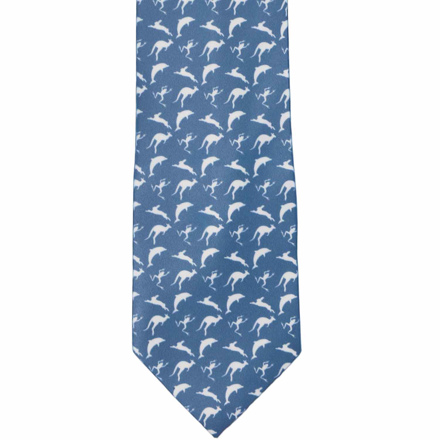 It only happens once every four years and we've captured the occasion on this unique tie! Leaping animals of every kind are jumping at the chance to celebrate the Leap Year on this blue necktie. The white animal silhouettes against the blue backdrop make this fun tie easy to pair with your favorite denim or your best blue suit.