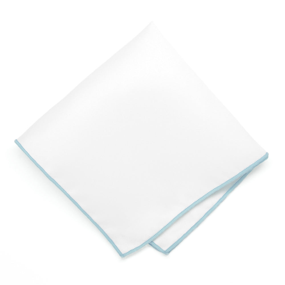 Add a perfect touch of color to your outfit with this tipped pocket square. The pocket square is all white, but features light blue stitching around the edges. Wear it in the spring with a pastel tie or any other time of the year with a darker blue tie, like dusty blue or navy.