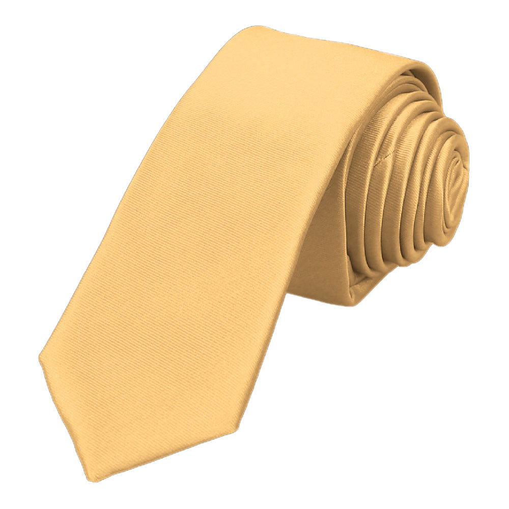 This golden haze skinny tie is just what your style needs. A classic color meets a modern width. It's cut to our skinniest, 2-inch width with a standard men's length. The material is a heavyweight woven polyester with a light satin finish, so it's not too shiny, not too dull. Give it a try, you're going to like this one.