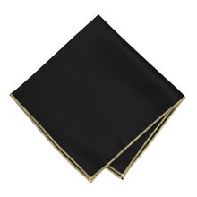 You'll look sleek and sophisticated in this tipped pocket square. The black pocket square features light gold stitching along all four edges. Fold it into your pocket in a way that emphasizes those sides. (A straight or pointed fold is our recommendation.) Pair it with our line of light gold premium ties, bow ties and accessories, use it to offset your favorite patterned tie or wear it all on its own.