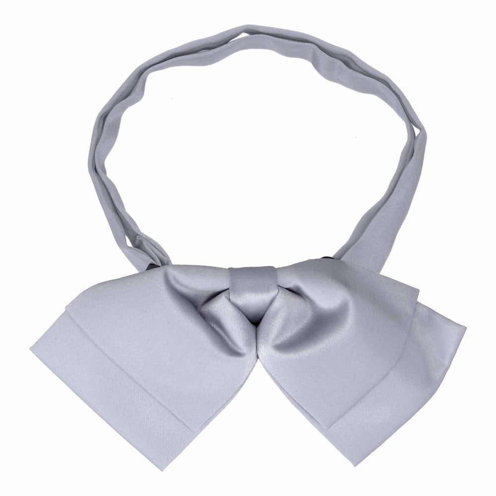This ash blue floppy bow tie is a popular alternative for women's uniform wear. Also stylish for vintage-inspired men's apparel. It attaches securely around the neck via an adjustable band that expands to fit neck sizes from 12 to 21-inches.