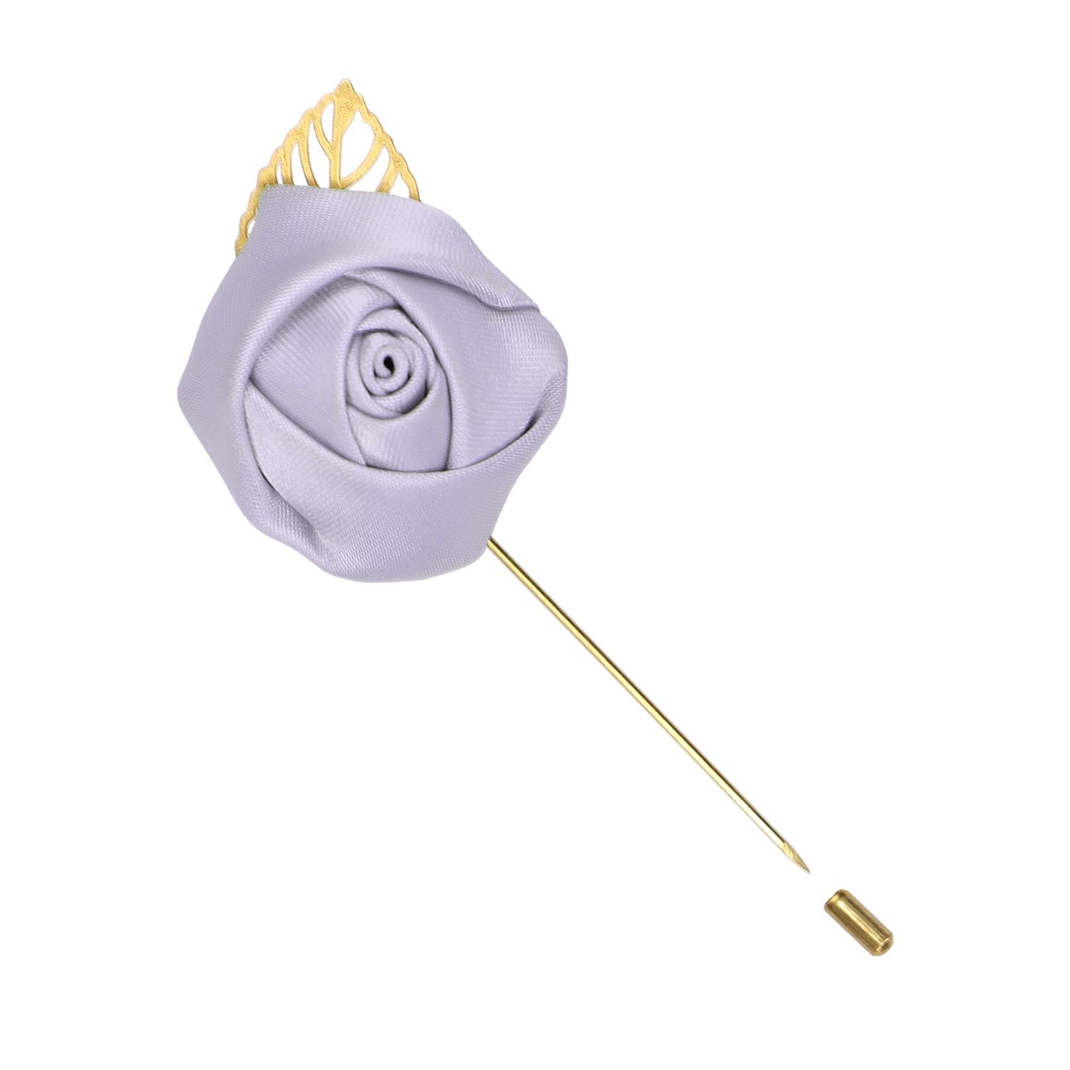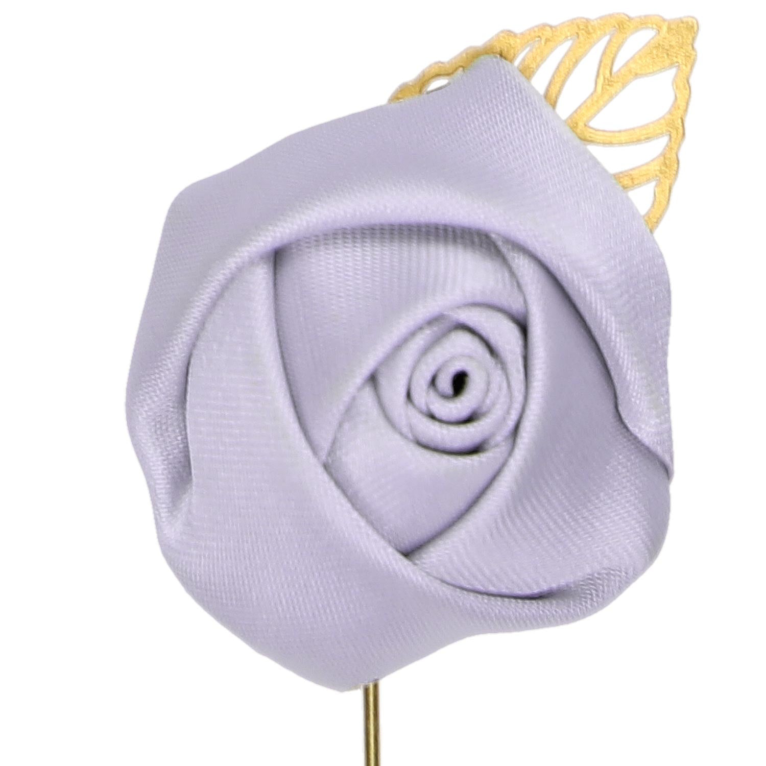 This lapel pin is part of our premium line of ties and accessories. We made sure it matches the ties by making the puff from the same heavyweight fabric. When you see it in person, you'll see that the material has a really elegant sheen finish to it. (Don't worry, it's not too shiny.) It secures via a gold-tone pin, which matches the leaf accent.