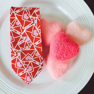 Mail call! This men's necktie is packed full of red and pink Valentines, just like those shoeboxes we used to decorate for February 14th as kids. It's a fun way to add some seasonal pizazz to your attire, especially if you're a teacher with a classroom full of students eager to hand out their envelopes and treats. Wear it with a light pink or white button down and slacks, or add it to any suit you choose.