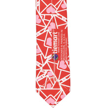 Detail time. This heartfelt tie is cut to a modern, 2.5-inch width and a standard 57-inch length. The design is created via dye sublimation, which we explain in detail below. This is a lighter weight tie and, if you look close, there is some subtle texture to the tie material.