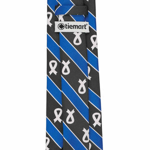 Show your support with this Lung Cancer Awareness necktie. It features white ribbons on a black background with blue and white satin stripes. Made from heavyweight, woven material and cut to a slightly trimmed, 3.25-inch width and 57-inch length. More styles available.