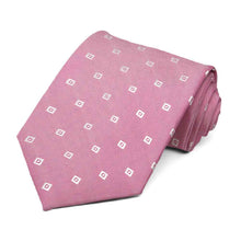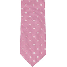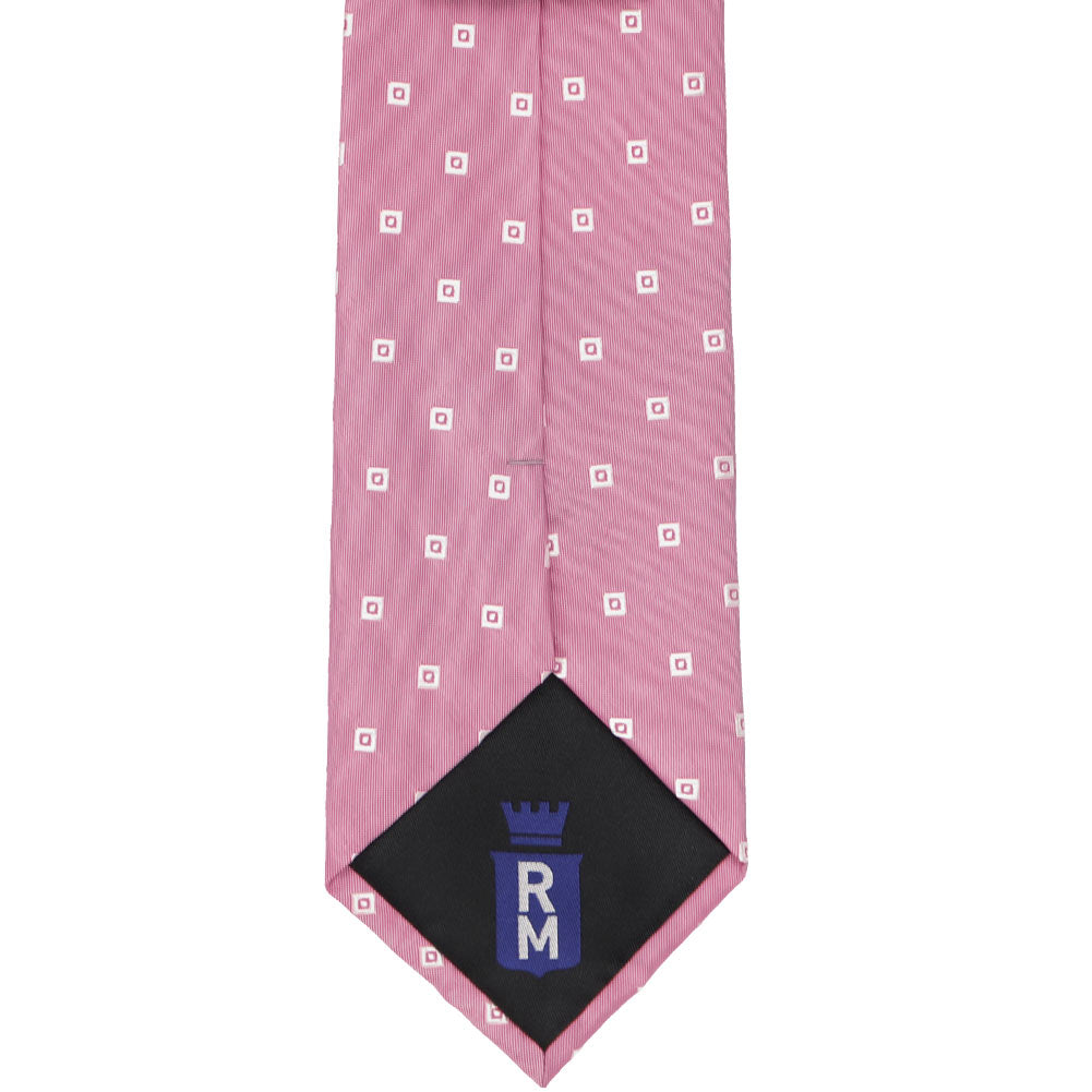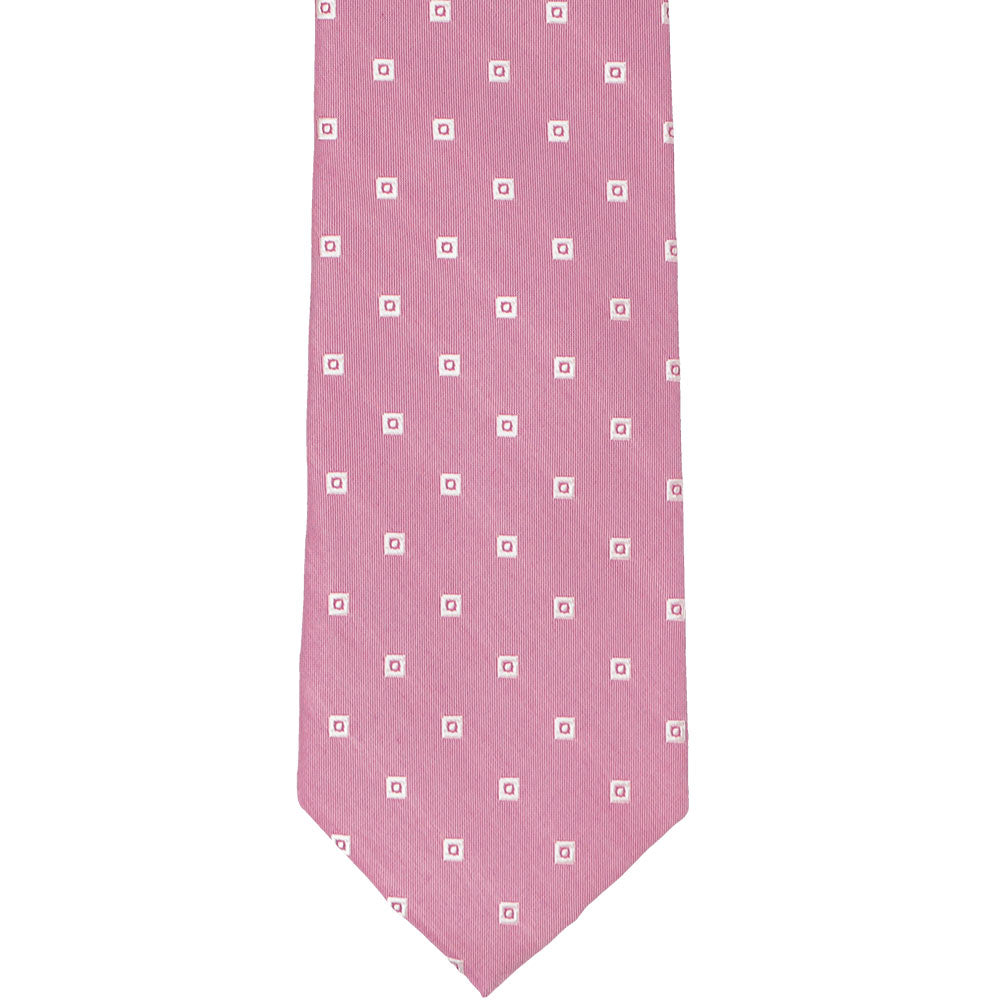 This tie screams warm weather: Spring, summer getaway! Look close and you’ll see that the intricate white geometric design is repeated across a light magenta background. The small white accents really make it pop! It goes with just about any color, but we think you’ll really like it with a navy blue suit.