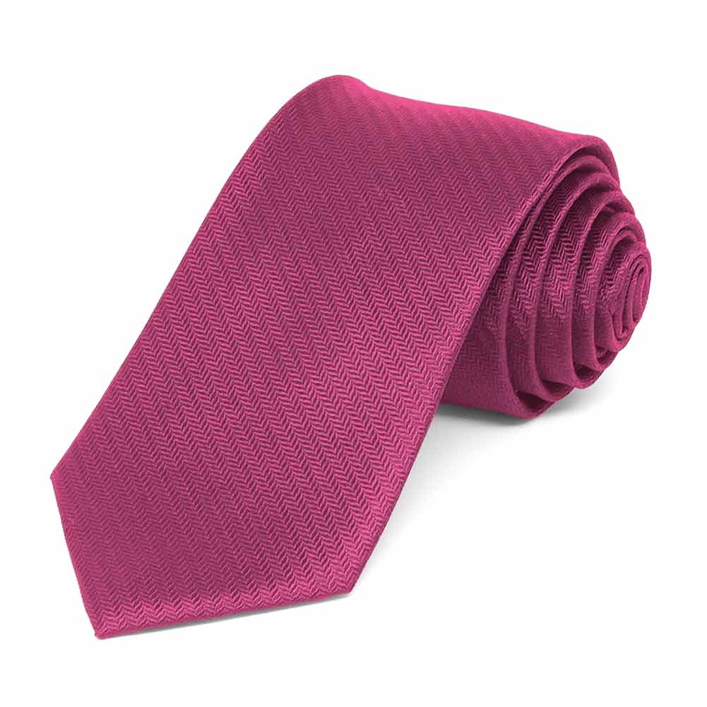 You'll love the slim cut of this modern, magenta herringbone necktie. It's the perfect manly shade of pink. Try it with a trendy, fitted suit for a fashion forward look. For formal occasions, add the matching pocket square (sold separately).