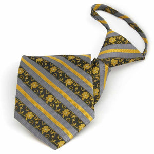 Make a statement with this floral striped zipper tie in rich fall shades of yellow, black, and gray. The unique pattern adds a touch of personality, while the pre-tied zipper design ensures effortless wear—just zip up and go! Perfect for busy mornings, it pairs effortlessly with black slacks and a button-down for a smart-casual look or elevates a formal outfit when worn with a suit. Dressing up? Complete the ensemble with the matching pocket square (sold separately) for a polished finish.