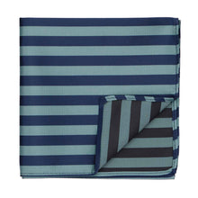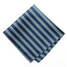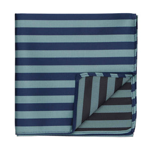 Calming blues in alternating satin and ribbed stripes elevate the look of this pocket square beyond that of a solid color pocket square. You'll find it just as easy to match to your neckwear, however. Try pairing it it with a solid color tie for contrast, or one of our matching ties or bow ties (sold separately). It's the perfect finishing touch on your formal attire (think weddings), or worn alone for a modern look.
