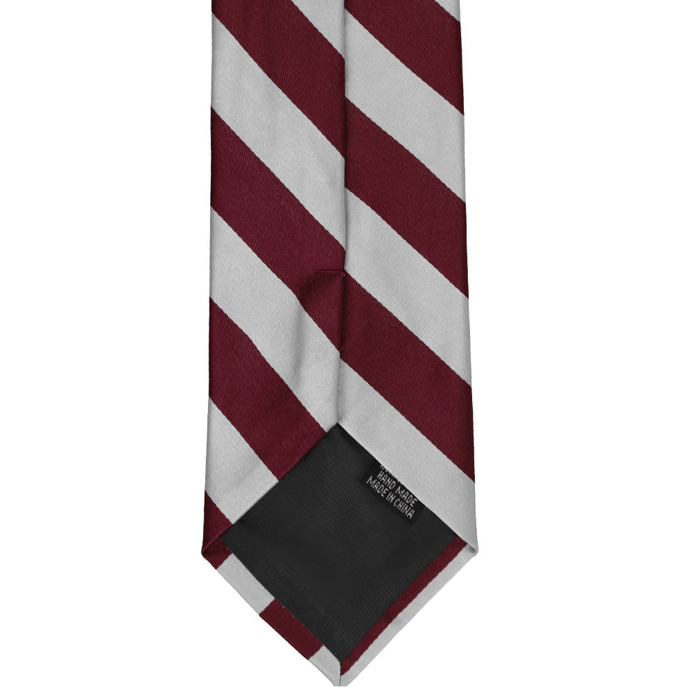 Show off your school spirit in this maroon and silver striped tie. It's part of our popular line of collegiate striped ties, which can be added to school or sports team uniforms or office wear. The 0.75-inch stripes are not too thick or too thin, just enough to get you noticed. Pair it with the matching pocket square for a complete look (sold separately).