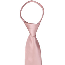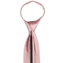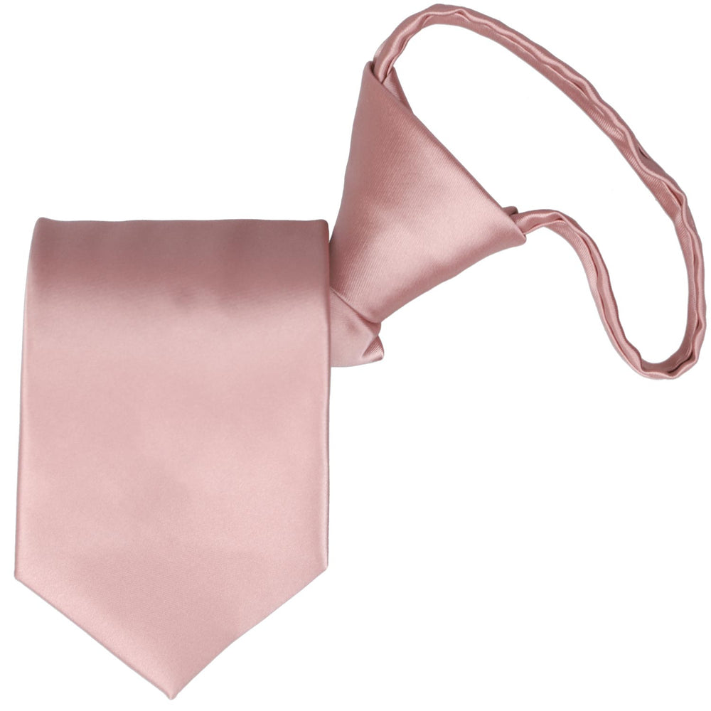 Discover the convenience of the pre-tied tie with this mauve zipper tie. There's no worrying about that perfect knot because you'll simply zip up and go. (For those unfamiliar with zipper ties, detailed instructions are provided below.) As far as the color and style, this tie is tailored for formal events like weddings. The subdued pink is rustic, elegant and romantic, and needs no explanation as to why it's one of our best sellers. The color stuns when pair with a navy blue or gray suit, but feel free to experiment with a classic black suit or trendy suspenders and slacks combo. Whatever your groomsmen wear, be sure to take a look at the matching mauve pocket square and lapel pin.
