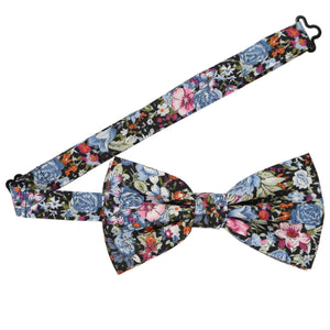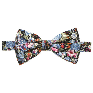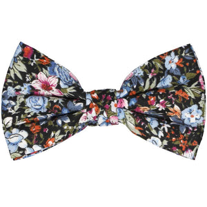Meet the Maywood. This is a floral bow tie you can wear all year long, but it's a personal favorite for weddings. It combines shades of pink, dusty blue, plum, burnt orange and black quite perfectly, don't you think?