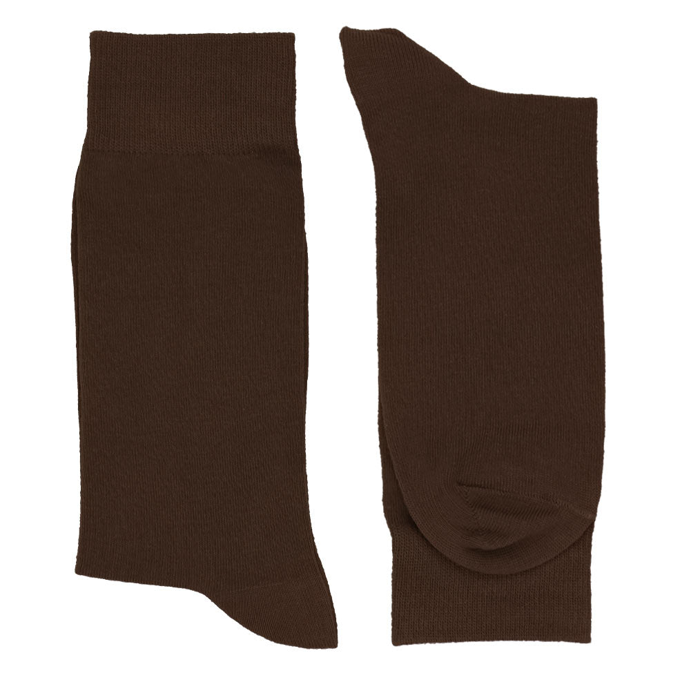 Don't forget brown when you're stocking up on socks for the work week. Every man should own a pair or two of brown dress socks, especially if he wears brown shoes on a regular basis. These men's brown socks are a crew height in a plain solid color. The shade is a medium to dark brown and looks great with a navy blue suit or khakis.