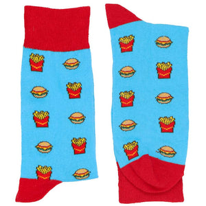 Order up! We hope you want fries with that because these fast food socks come with the combo: A fun pattern of a burger with all the fixings and a side of fries. Take these socks to go...anywhere. The office, a wedding or out to eat.