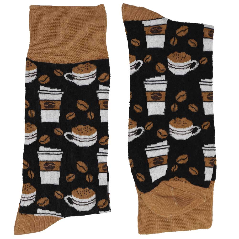 Start your day fresh with a pair of men's coffee pattern socks. They're non-fat with no cream or sugar and sized to fit feet from small to large (aka men's shoe sizes 6 to 12.5.). Caffeine sold separately.