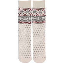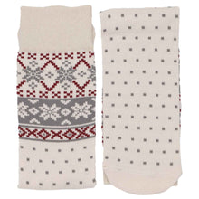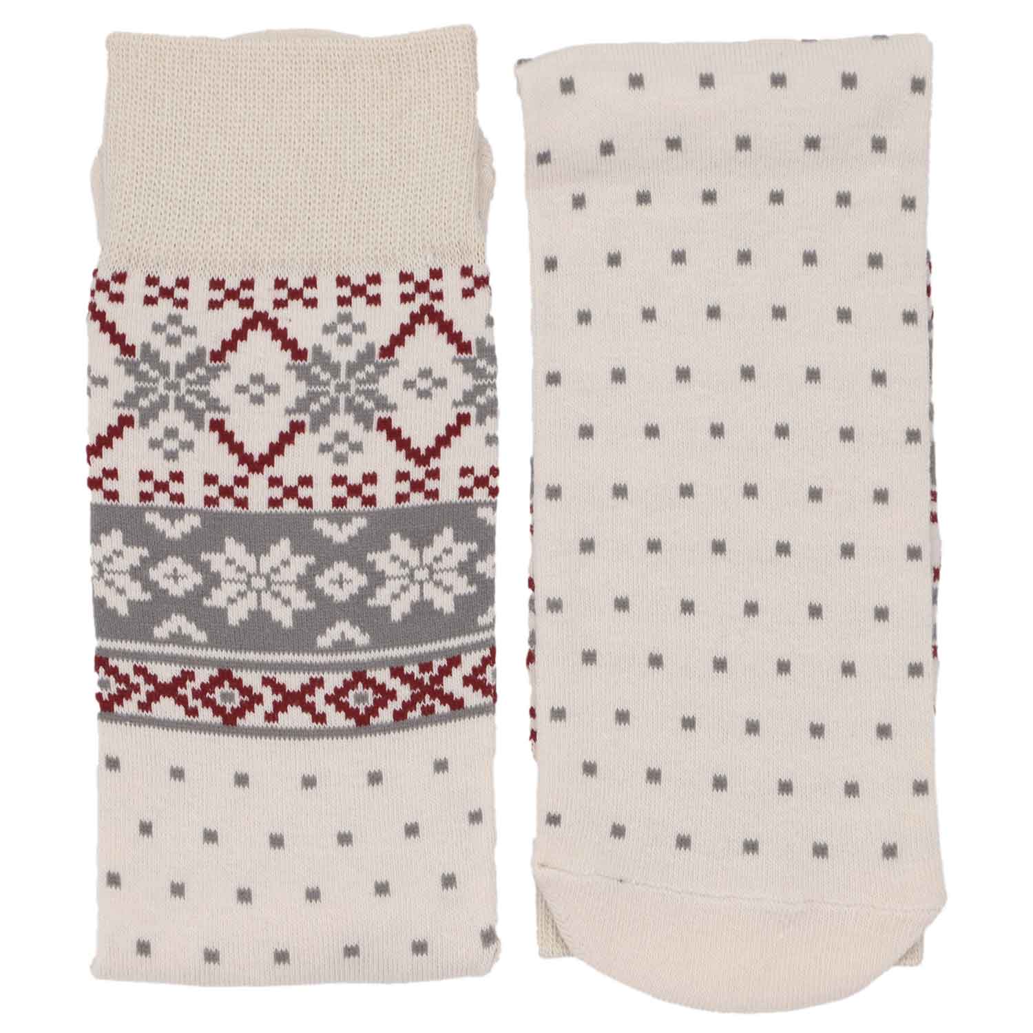 We updated the traditional fair isle pattern with playful polka dots for a pair of wintry socks you can wear for Christmas and the whole snowy season through. The cream, gray and burgundy design is work appropriate, but don't stop there. Cozy up by the fire with some hot cocoa while wearing these and you'll feel like you're in a Christmas movie!