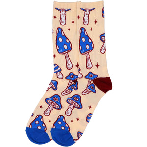 Are you looking at them, or are they looking at you? These fun mushroom socks will have you looking twice thanks to the funky design and vivid blue and dark red colors that really pop out from the beige background. Wear them on your next foraging trip through the woods or gift them to your mushroom-loving friend! (We all know a funguy, right?)
