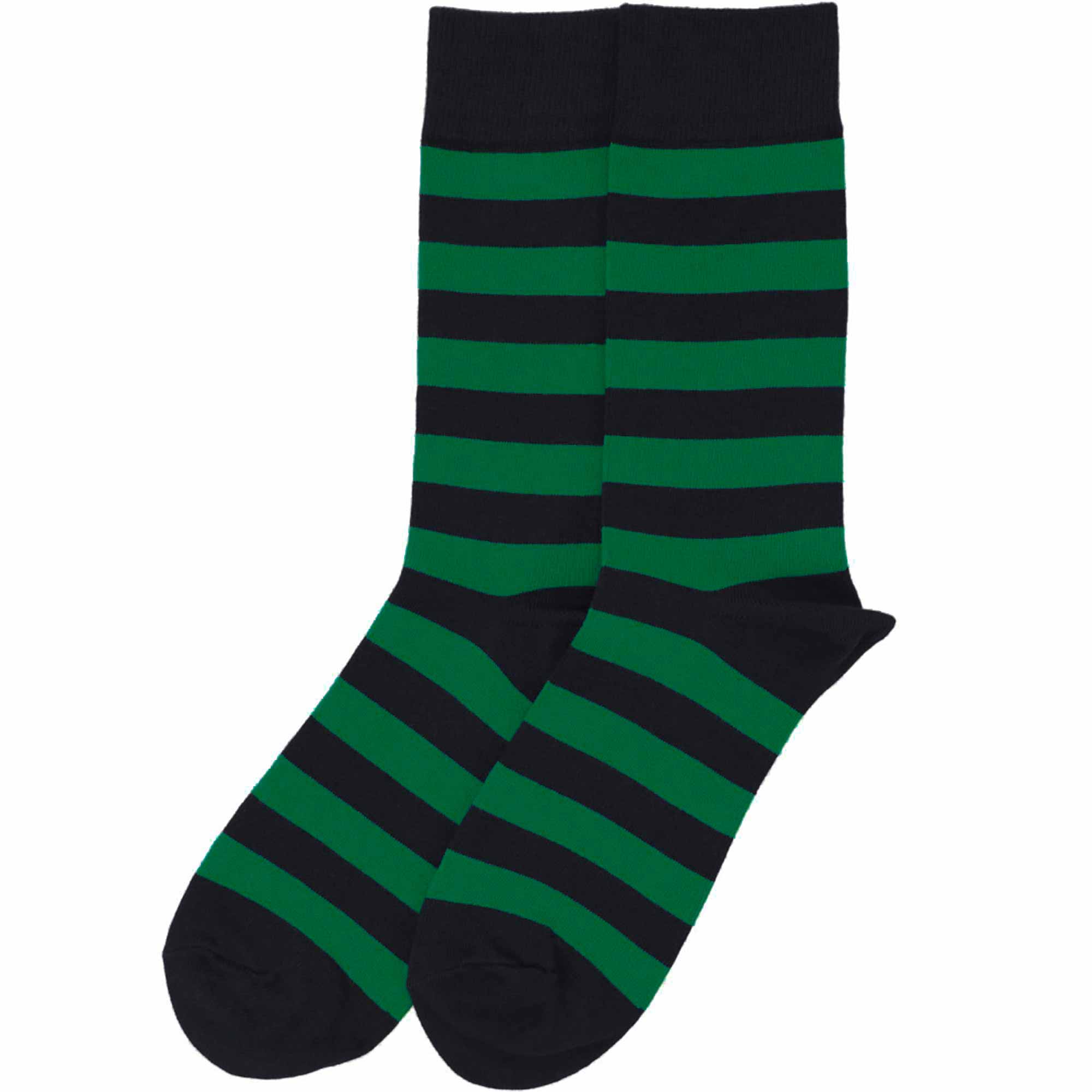 Gear up for the school year or game day with these kelly green and black striped socks. Perfect for pairing with matching ties or going more casual, sans necktie. The stripes, measuring 0.5 inches, offer a classic collegiate style that's neither too wide nor too skinny.