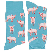 Regular, boring socks got you wallowing in the muck? Try on a pair of these men's pig socks! The perfectly pink piglets are sure to put a smile on your face and keep your own piggies comfy and looking cool. Wear these light blue socks with your favorite boots or sneakers while you're working in the stalls, or even dress shoes to add a bit of color to your formal wear.