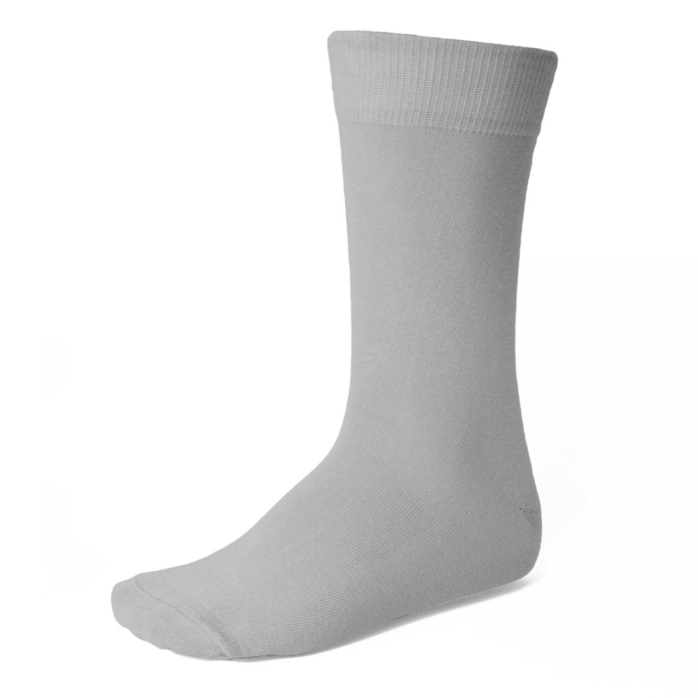 These men's silver socks are a great neutral accessory to add to your wardrobe. These dress socks can be worn for work, everyday or as formal socks. (Silver is a great color for groomsmen socks!) We personally like these socks with black or navy blue suits.
