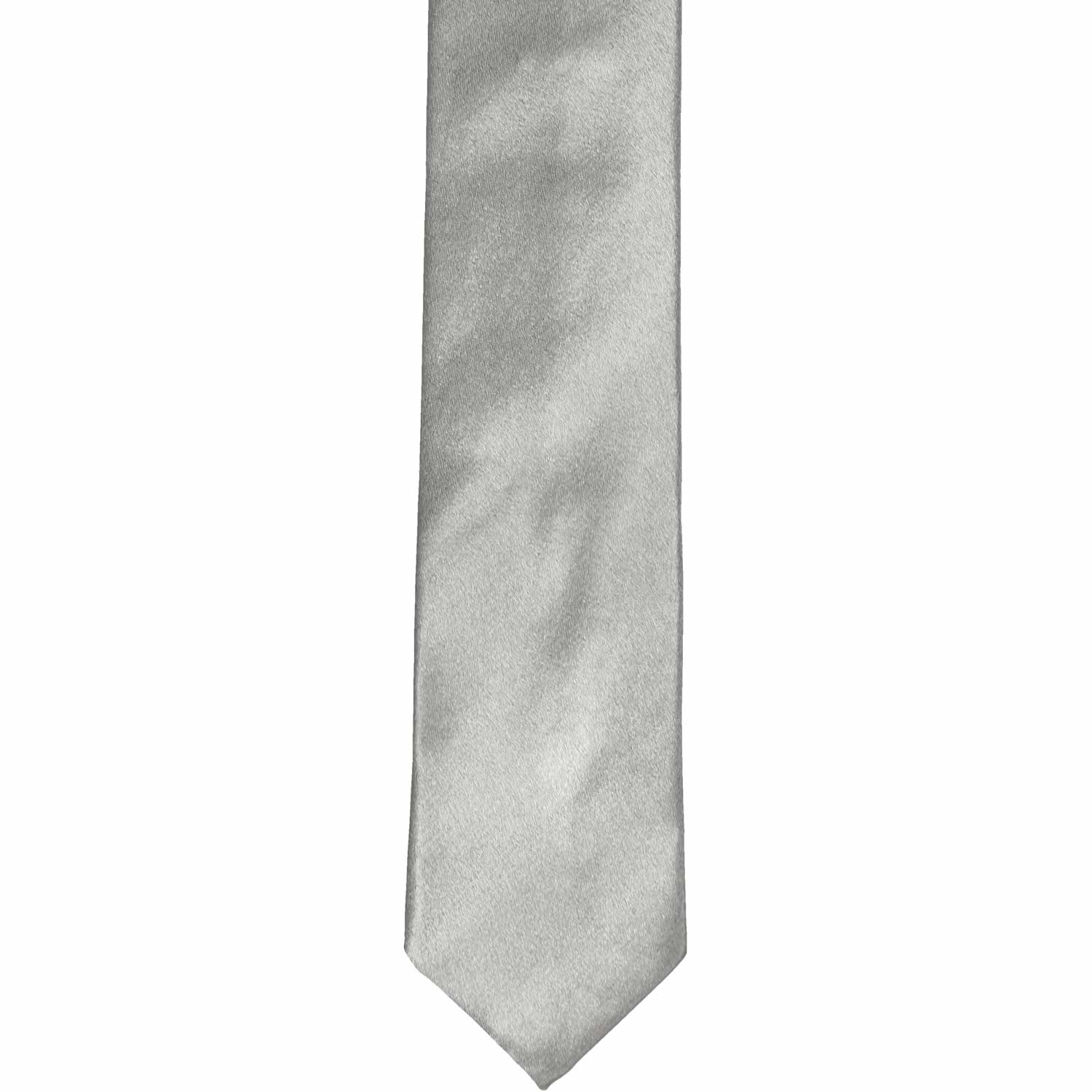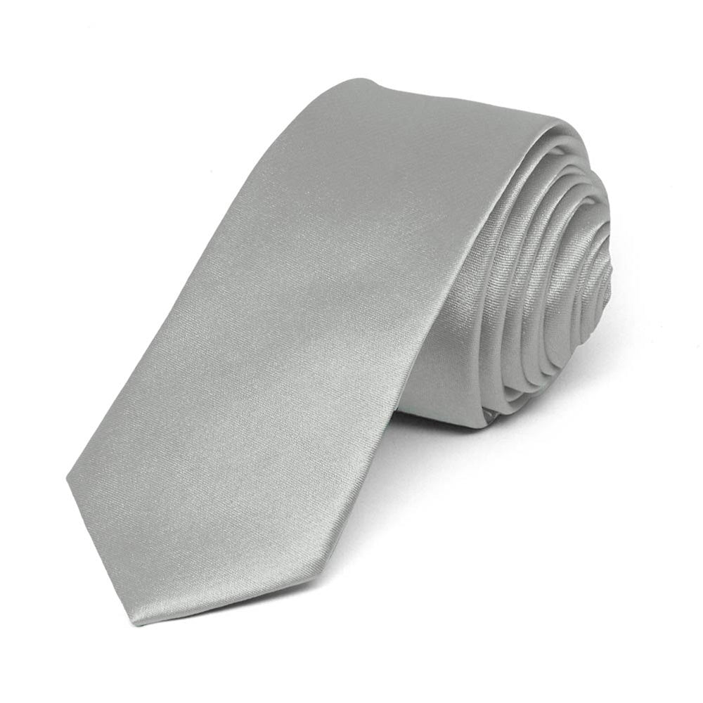 Our mercury silver skinny tie has a shiny, satin finish that is elegant for formal events like weddings and Prom. However, it will look quite professional in creative and casual workplaces, too. There are matching pocket squares (sold separately) if you require one.