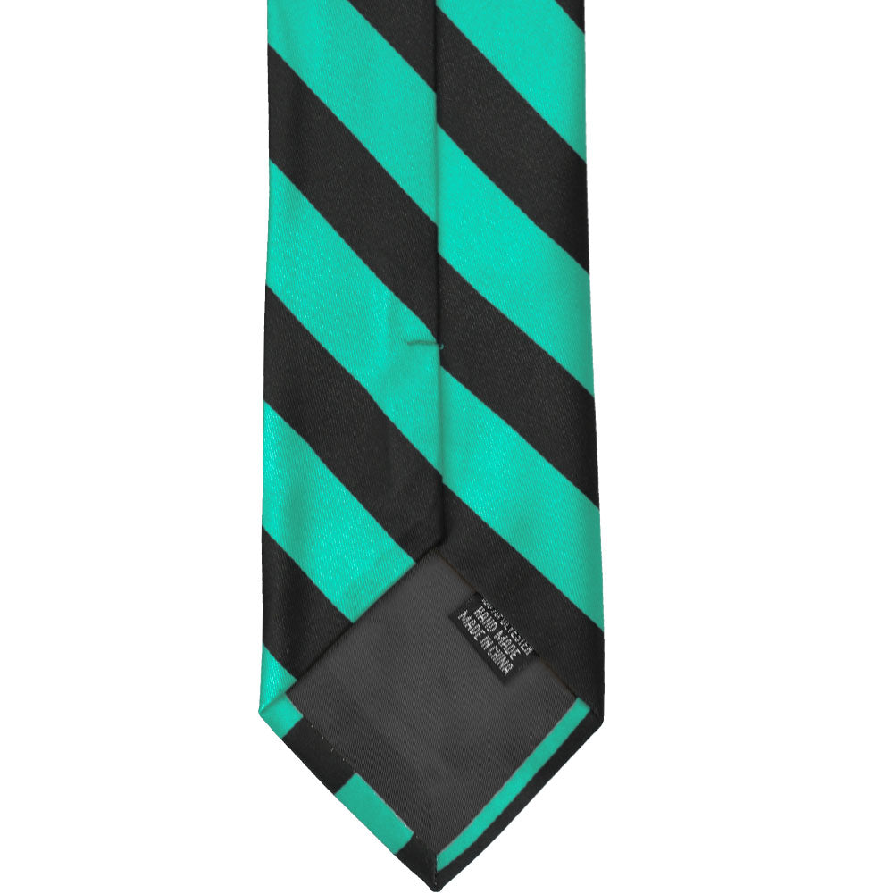 Mermaid (bright blue-green) and black stripes create a sleek color combo that is ideal for weddings or vibrant everyday attire. Easily match this tie to your wedding colors, your Prom date, or a black suit for that big interview. Complete your look with a coordinating solid color pocket square. Also a popular choice for setting the groom apart from his groomsmen.