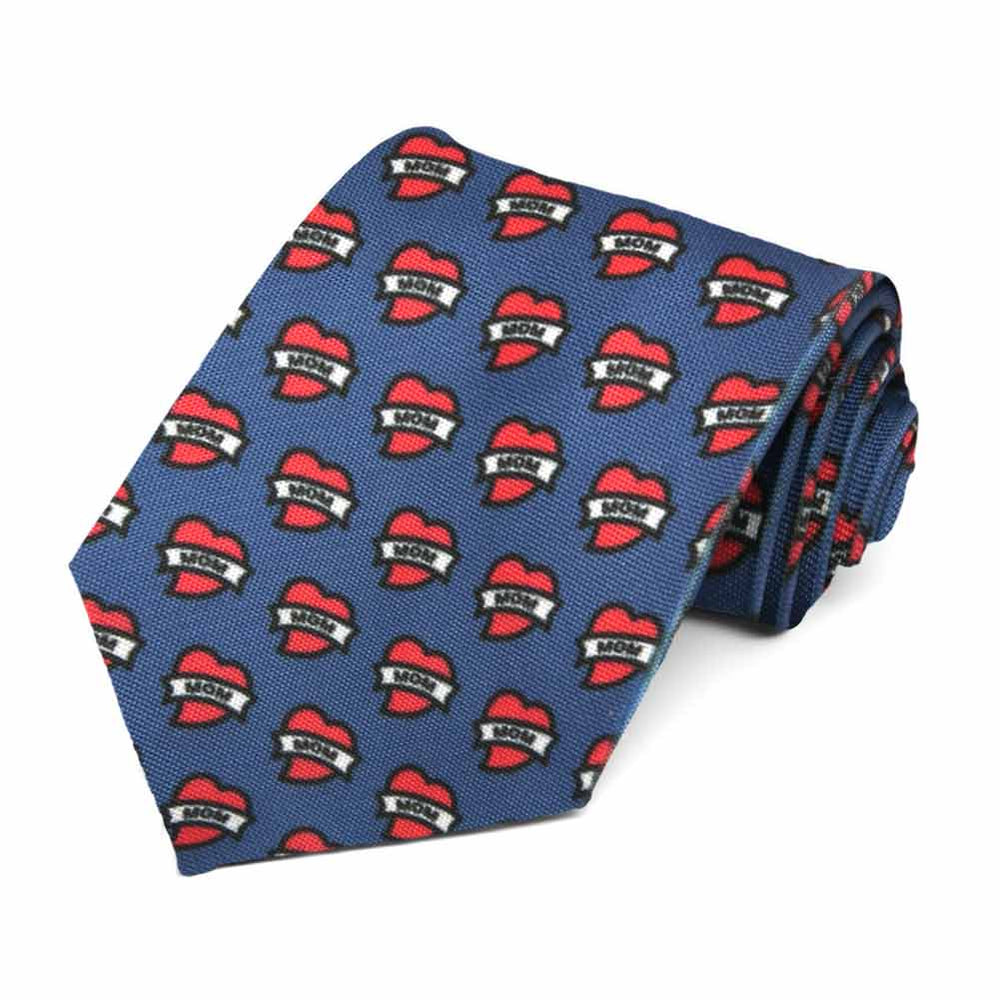 Mom always told you no tattoos, but did she tell you no tattoo neckties? Show her you care this Mother’s Day with this heart tattoo necktie. The cool novelty design is on a dark blue background. It will look great with a suit or simple dress shirt and khakis combo. This pattern is also available in a boys’ tie for a matching family look.