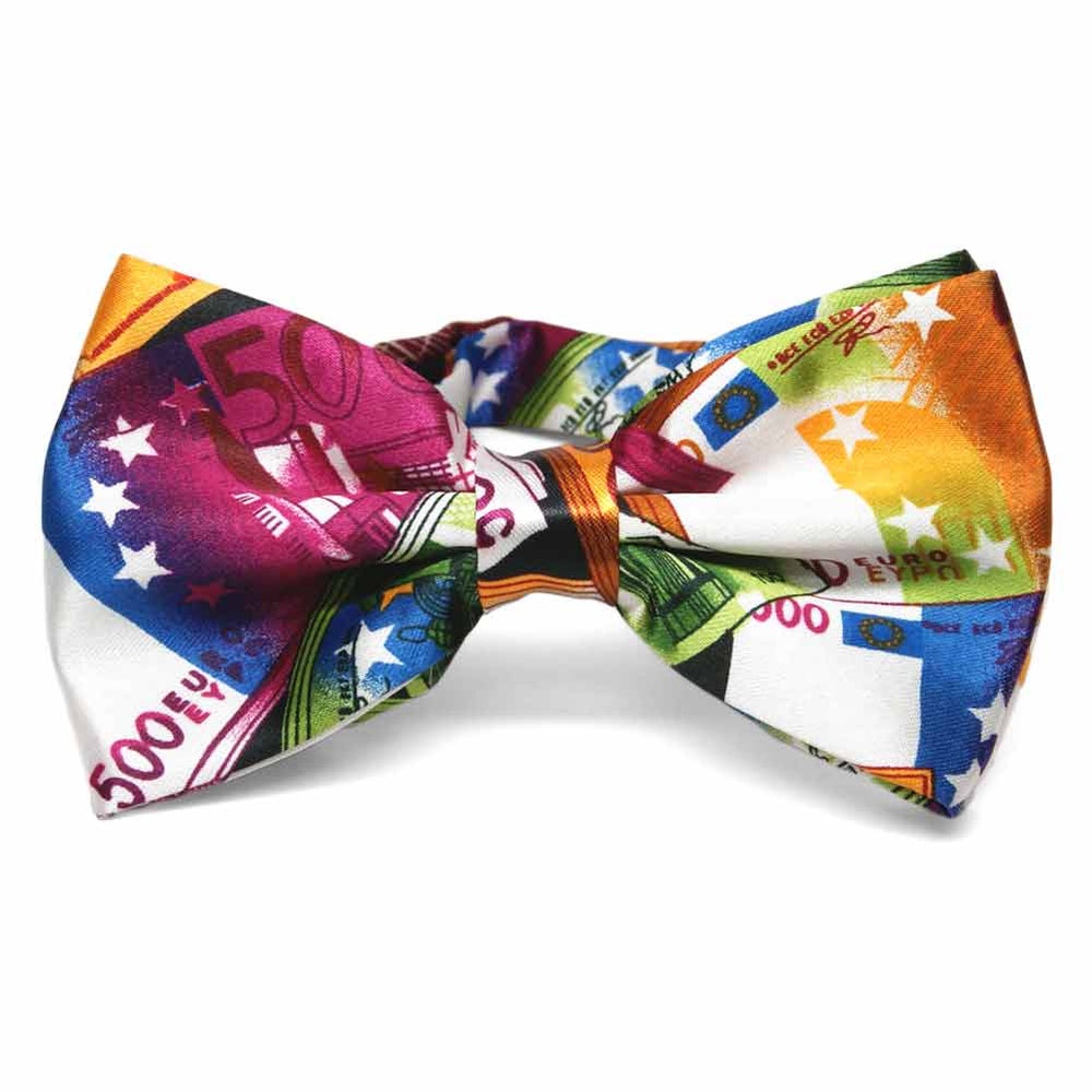 Spend your hard-earned cash on this money bow tie! The colorful bow features an international currency print. All those colors mean it's easy to pair with any suit or shirt and slacks combo. This would make a great gift for your favorite banker or wear it yourself for good luck while you're playing at the casino.