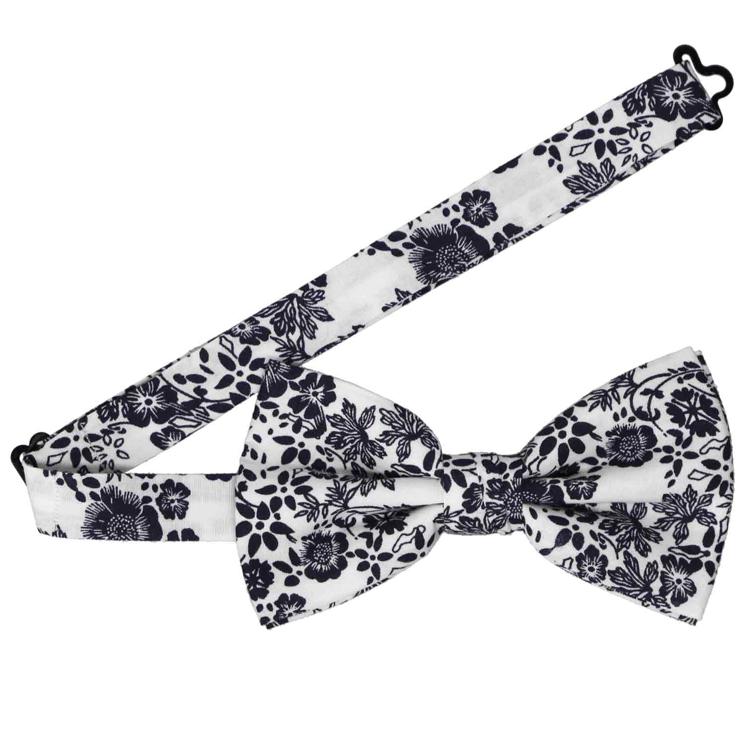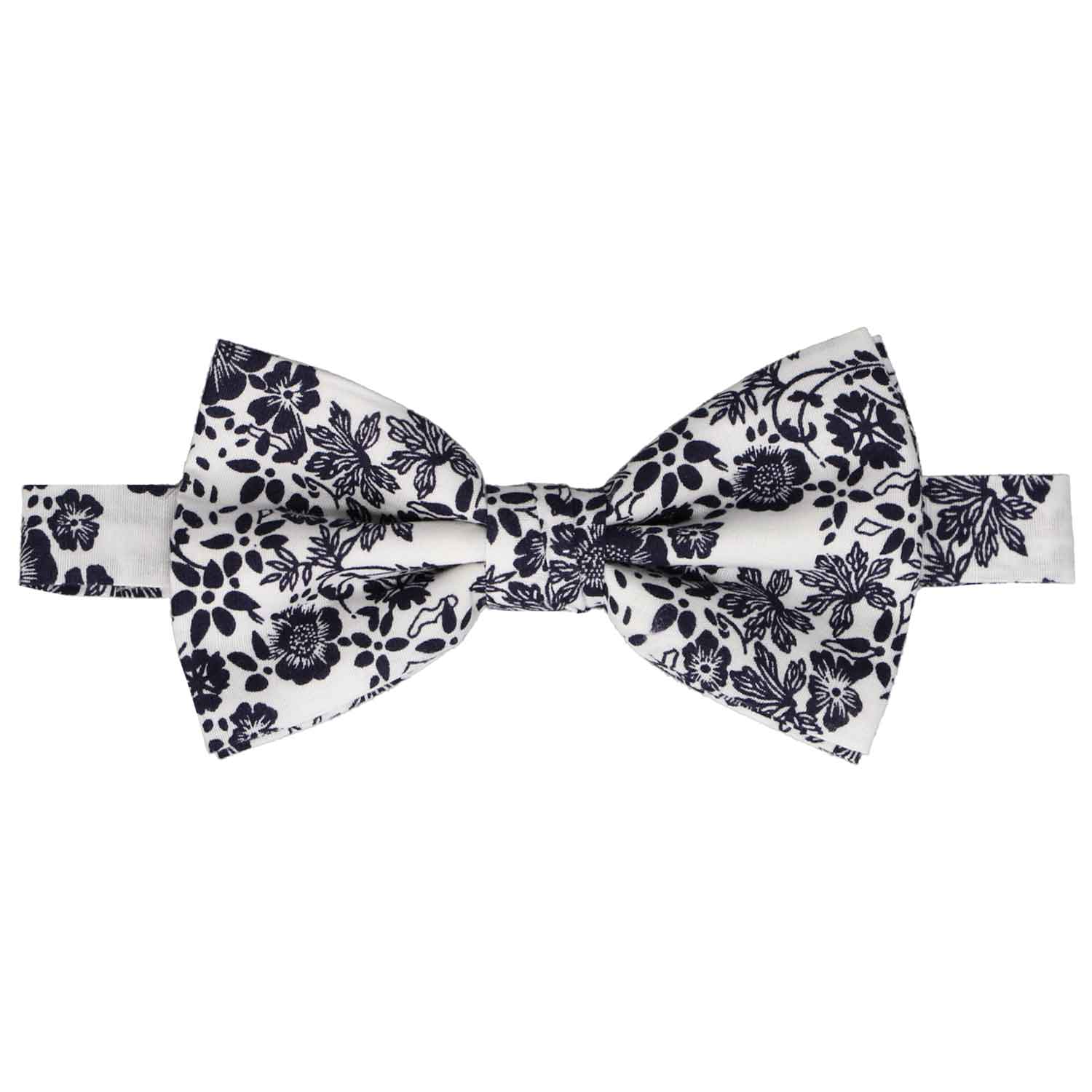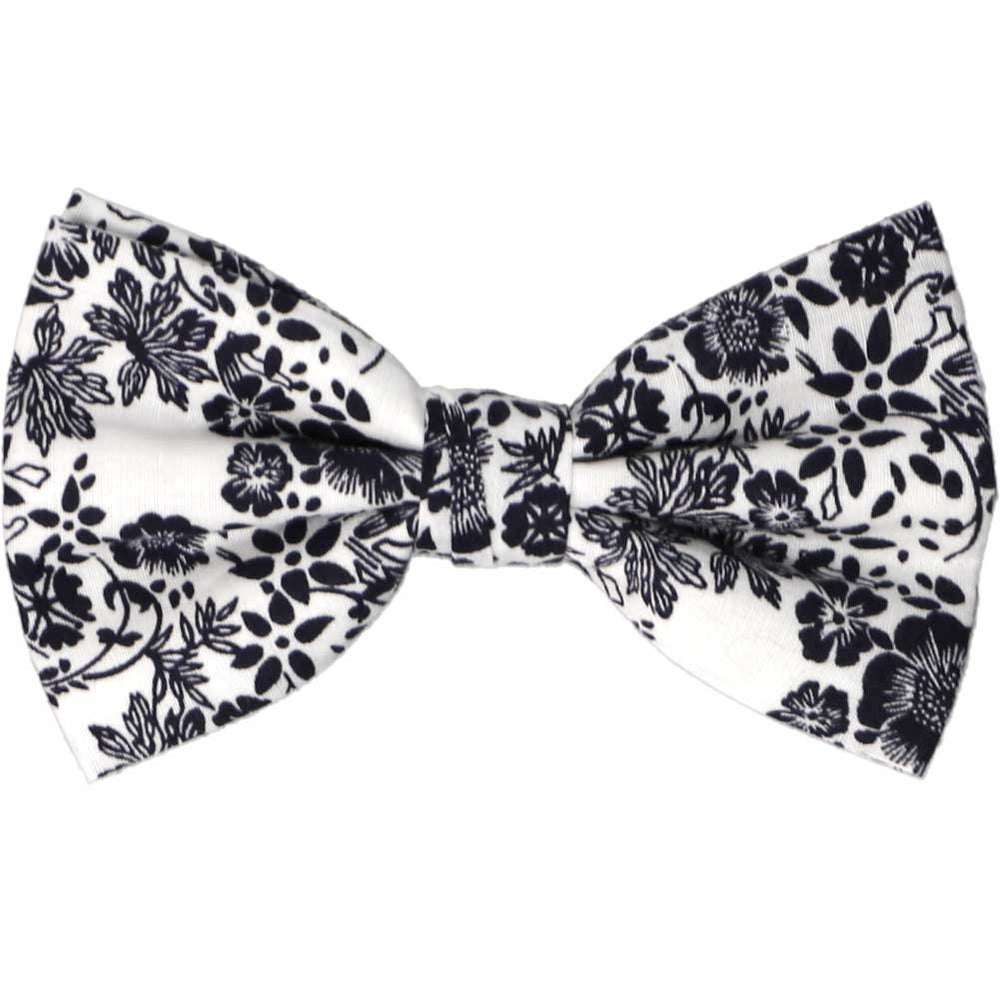 Here's a floral bow tie you'll wear all year long. The navy blue and white color combo gives it a classic look. Wear it casually to the office or dress it up for your wedding party. (This floral design also comes in a necktie if you want to offset the groom and groomsmen.)