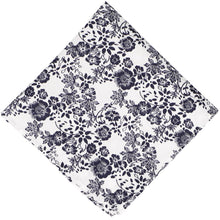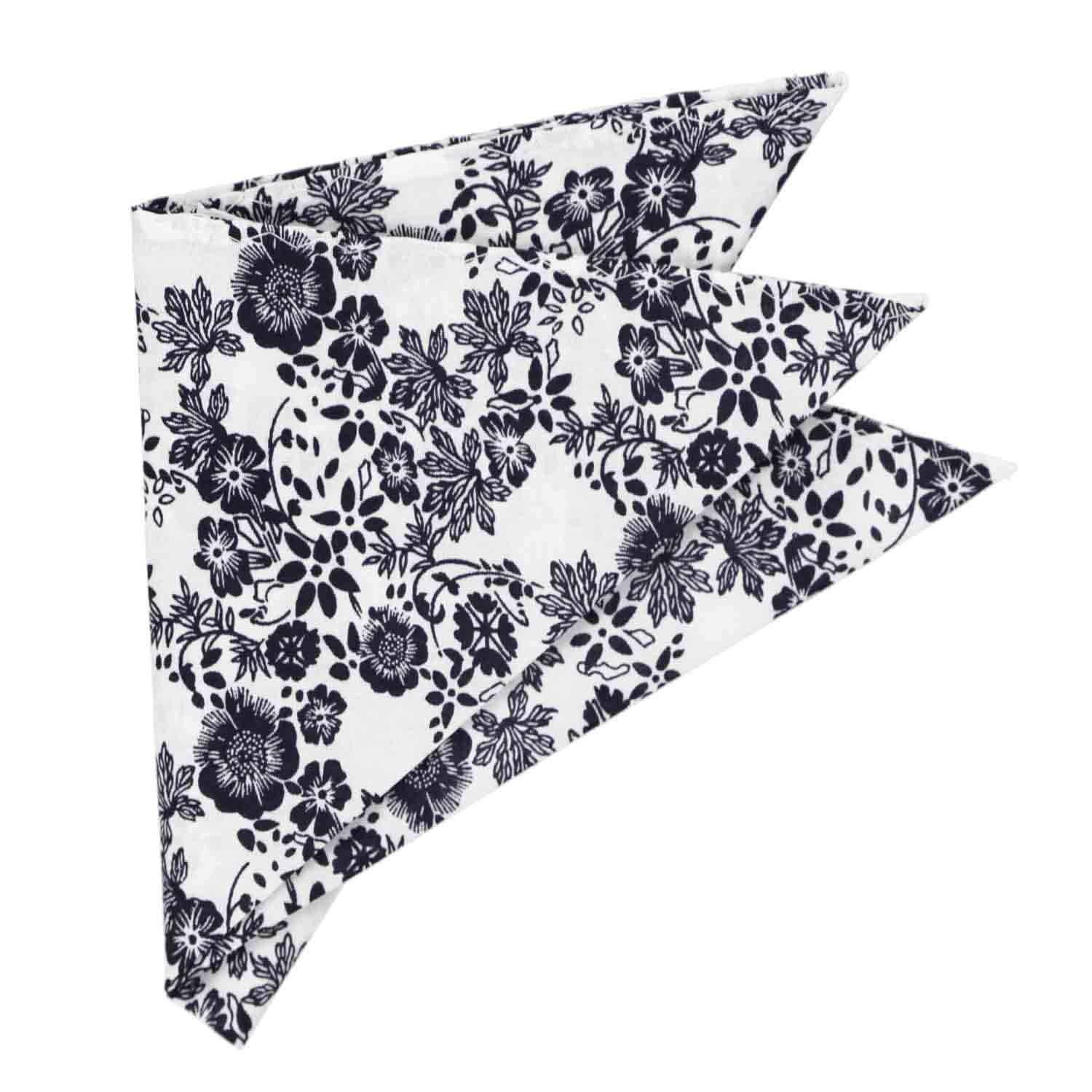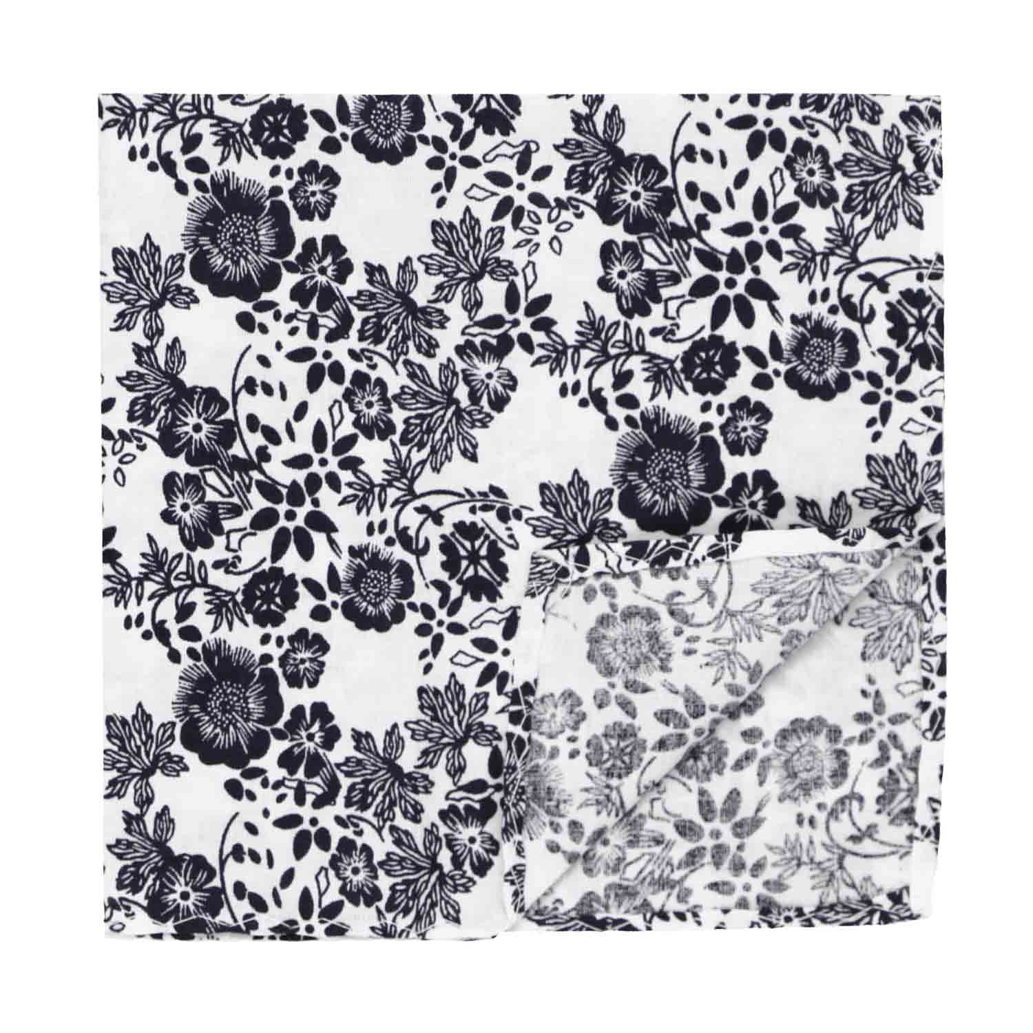 Here's a floral pocket square you'll get a lot of use out of. The navy blue and white color combo gives it a classic look that's easy to match. The pattern is on a large, 12-inch by 12-inch square to suit a wide variety of folds. Made from 100% cotton. Matching ties and bow ties available for purchase. Or, use this pocket square to contrast against a solid color tie of your choice.