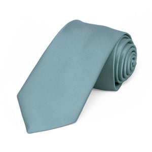 This mystic blue slim tie does weddings effortlessly. The light, dusty blue hue will not only match your wedding colors, but look great any way your groomsmen wear it: With a fitted navy blue or gray suit or a more rustic tan suspenders and slacks outfit. We offer matching pocket squares (sold separately) in this color for the full ensemble.