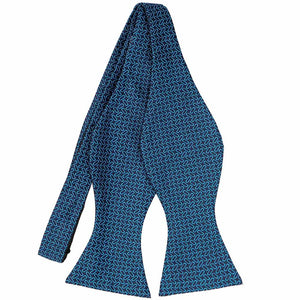 Get noticed in this smartly patterned blue-on-blue self-tie bow tie! Small bright blue ovals pop against the navy blue background. You'll find yourself wearing this one for all occasions due to its simple but fun design and color scheme. Pair it with any color suit or slacks for formal or casual wear.