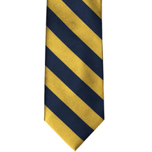 Every man should have a classic collegiate striped tie, and this navy blue and gold striped necktie is the one! It's easy to pair with office wear and suits, alike. This is a popular color combination among sports teams and schools, so we frequently see it added to school and game day uniforms.