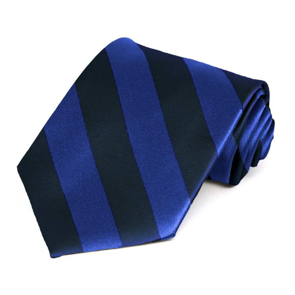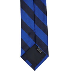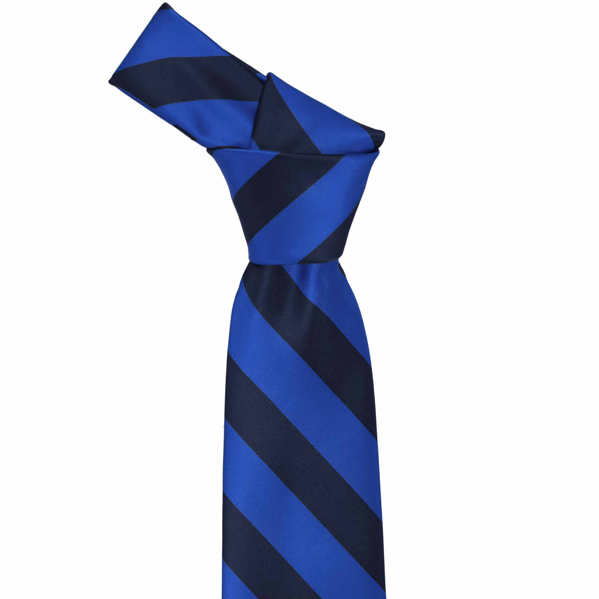 Blue on blue tones make this collegiate striped tie the perfect choice for dapper uniform attire or daily office wear. Easy to match to suits or a shirt and slacks combo. For dressier occasions, purchase a coordinating solid color pocket square for your suit jacket.