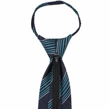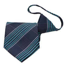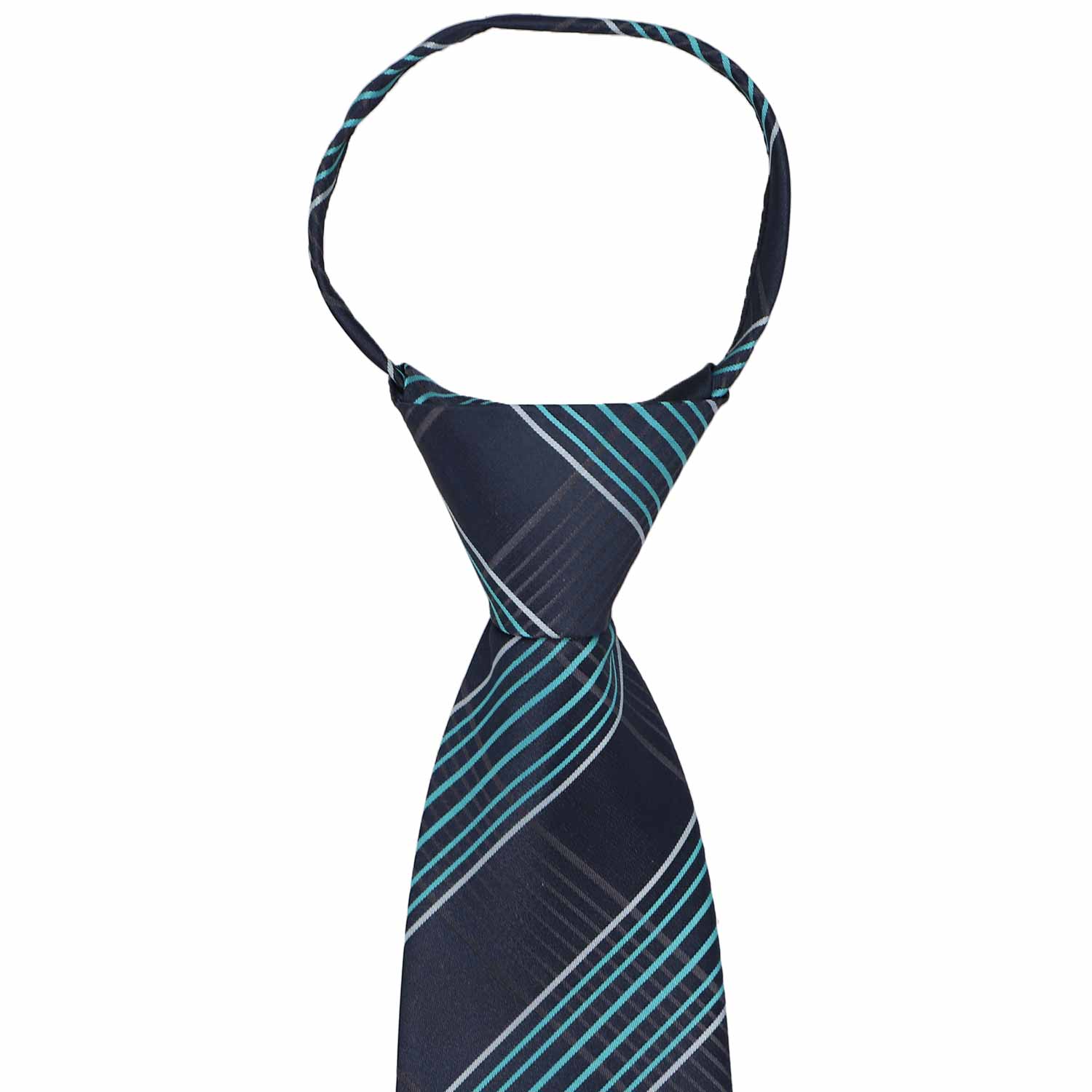 Getting ready has never been so easy. Just zip up your tie and go with this navy blue and turquoise plaid zipper tie. The versatile colors make it a breeze to coordinate the rest of your outfit, whether you're donning a gray suit or a button-down and slacks. If you're new to zipper ties, this pre-tied accessory looks just like a regular tie when worn, without the fuss of tying a knot. Take a look at our zipper tie instructions below for the secret to putting it on.