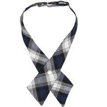 Get set for back to school in this navy blue and white crossover tie. This popular plaid is the perfect accessory for female school uniforms. Mix tie styles and select the matching neckties, pre-tied ties or bow ties for your K-12 male students.