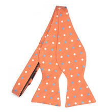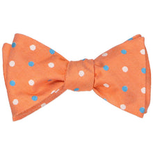 Don't you just love a fun bow tie? This attention-getting pattern features blue and white polka dots on a textured orange background. You can wear this bow tie with a suit or go casual with a fresh button down and dark denim. Whatever you decide, all eyes will be on you!