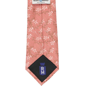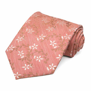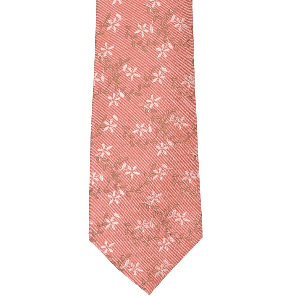 A white and burnt orange floral vine pattern winds its way across this muted orange necktie. Perfect for spring and Easter Sunday. Wear it casually to the office with navy blue or tan slacks. When it’s time to go formal, try it with a navy blue suit for a head-turning look.