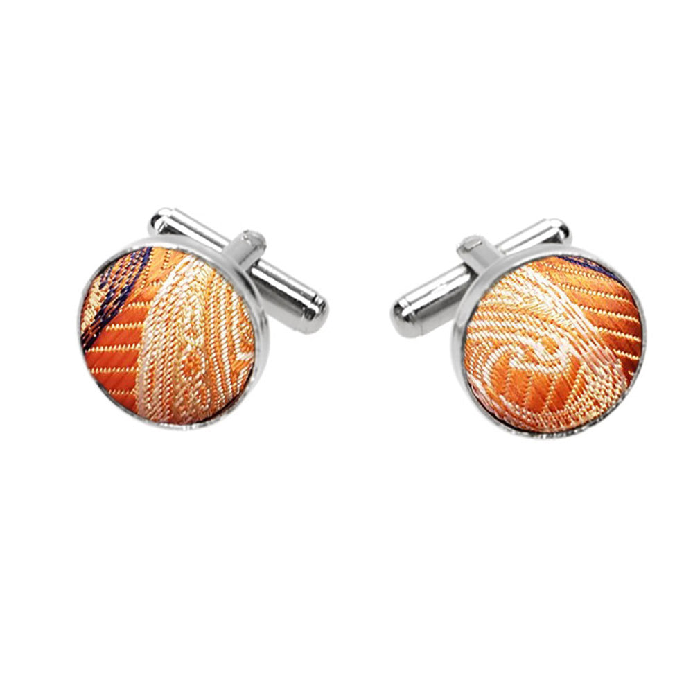 There's something special about orange cufflinks. They look great with a navy blue or gray suit and can add a pop of color to your outfit. The paisley pattern on these cufflinks is made from fabric and is attached to a silver-tone backing. Wear these for business or formal occasions. They also make a great gift!