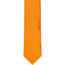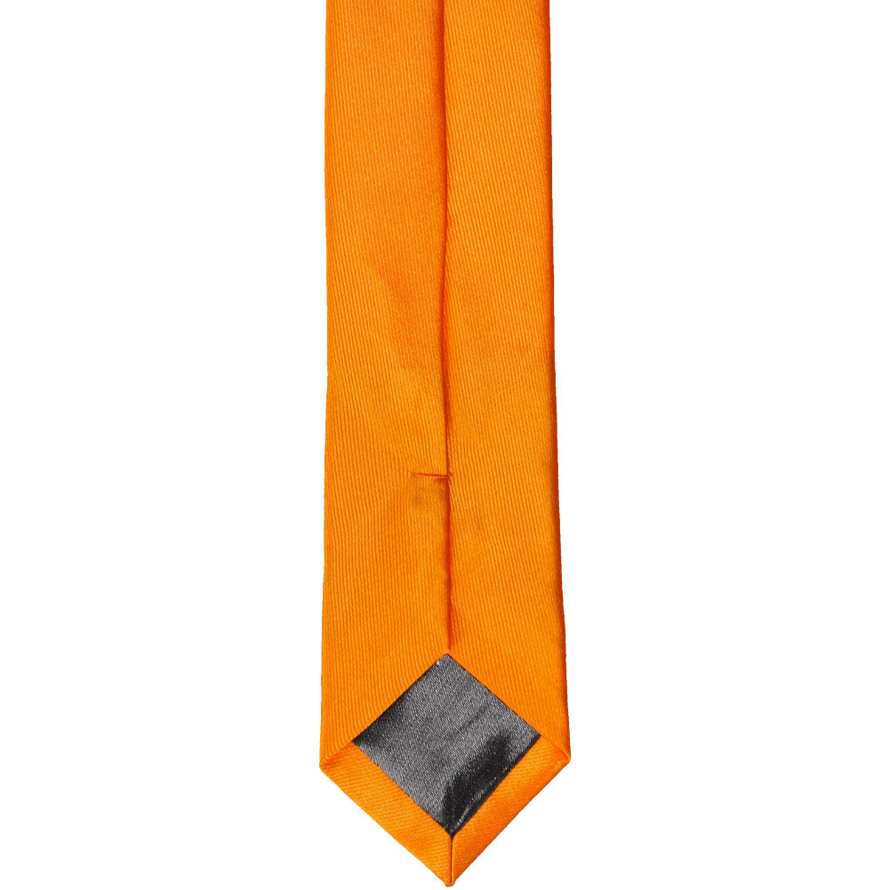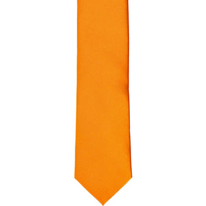 This orange skinny tie is our thinnest width tie at 2-inches wide. It's made from a heavyweight woven material with slight ribbing. The finish is in between shiny and matte, which we think you'll like.