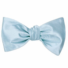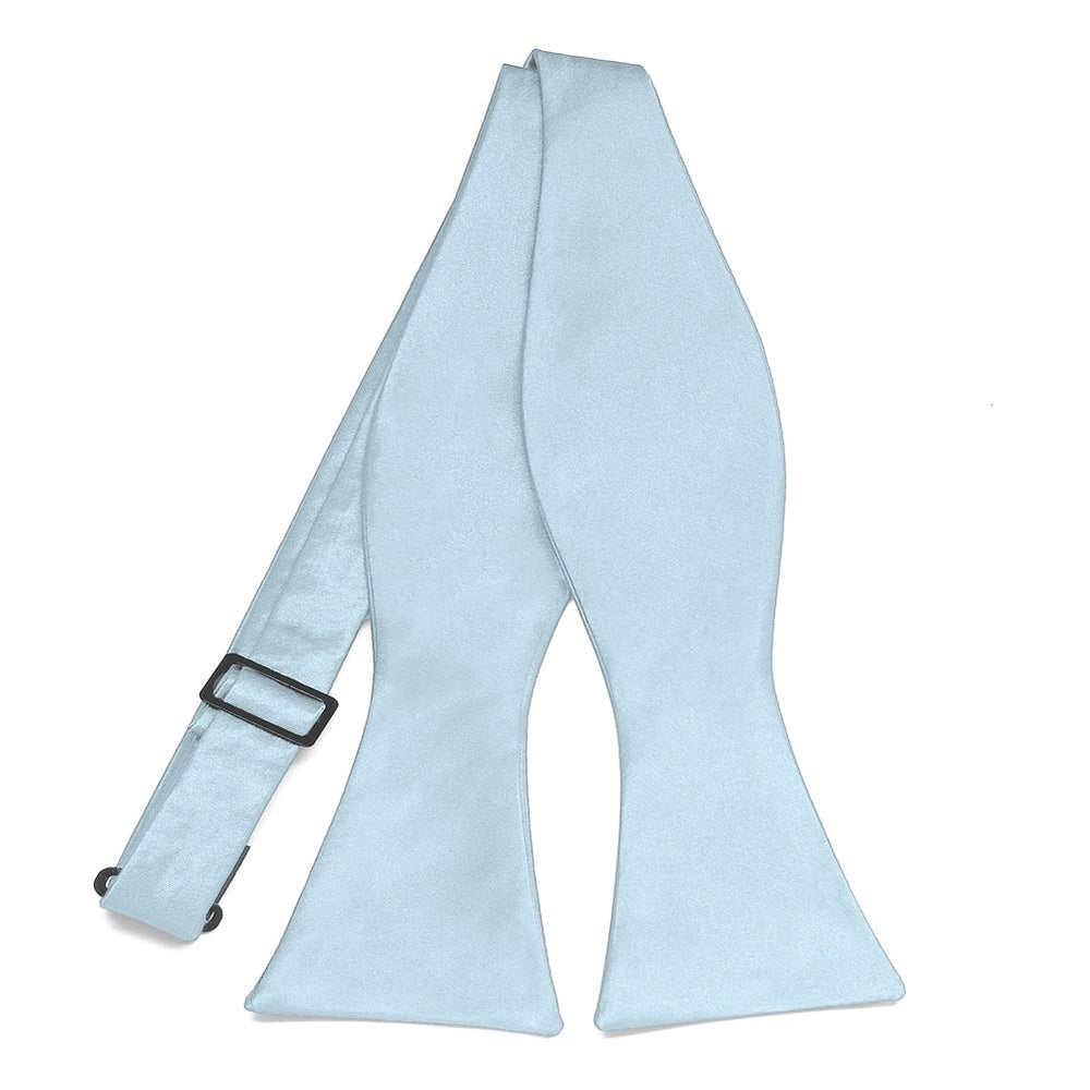 Now you can create your own bow with this pale blue self-tie bow tie. Can be worn tied or untied. The adjustable band allows you to fit the bow to your neck size. See related products below for a matching cummerbund and pocket square.