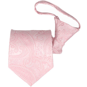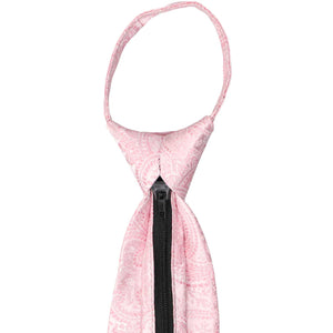 This pale pink paisley zipper tie is the perfect choice for a wedding or gender reveal. Its tone-on-tone pattern with delicate white stitching adds a touch of elegance and sophistication. Timeless and refined, this tie pairs effortlessly with almost any groomsmen suit color, or for a more relaxed look, try it with a sleek suspenders and slacks combo. A versatile and stylish option for your special occasion.